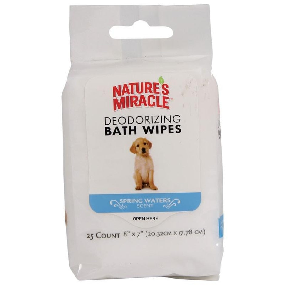Nature’s Miracle® Deodorizing Bath Wipes help deodorize, freshen and moisturize your dog’s coat in between baths, when used and stored as directed. Enriched with aloevera, keratin and vitamin E, these convenient wipes are pH balanced for dogs and freshen with a light lavender scent, leaving no wet dog smell. Plus, they’re paraben-, sulfate- and dye-free and feature Odor Capture 360™ technology for odor control. Gentle enough for everyday use but strong enough to help neutralize tough pet odors, these wipes are also great for pet spot and paw cleaning as needed