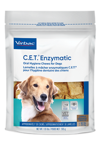 C.E.T.® Enzymatic Oral Hygiene Chews for Dogs feature an exclusive Dual-Enzyme System, plus an abrasive texture. Working with the dog's chewing action, C.E.T. Enzymatic Oral Hygiene Chews reduce plaque and tartar helping keep teeth clean and breath fresh, even on days when brushing isn’t possible. Available sizes to Extra Small, Small, Medium and Large.